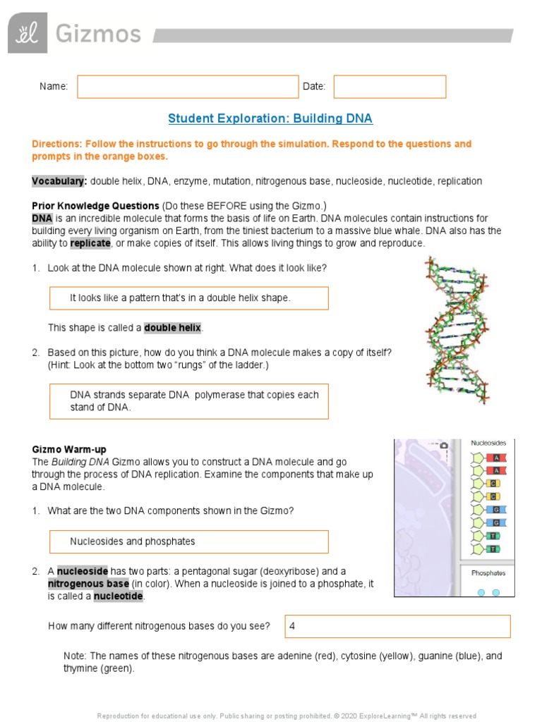 Modified standard biology building dna. Building dna (answer key) building dna gizmo answer key an answering provider, unlike an automatic answering machine along with a recorded message, will present your potential consumers cell phone responses with a real voice in the event you are unavailable to. Building dna answer key vocabulary: Read online now student exploration disease spread the url is in the video. Student exploration building dna answer key quizlet + my.